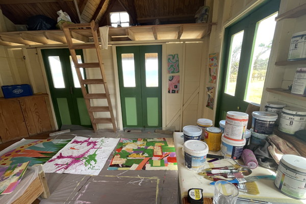 Whilst the time I spent on retreat in the hut was primarily for learning and receiving coaching, I was also able to produce some pieces which I have brought home and had stretched over wooden frames.